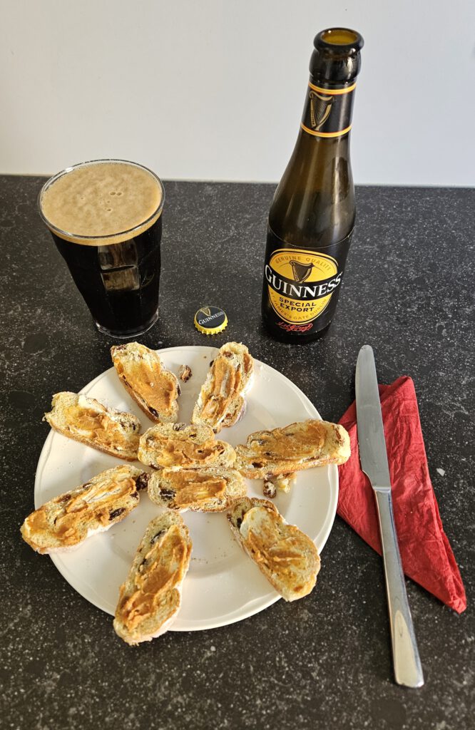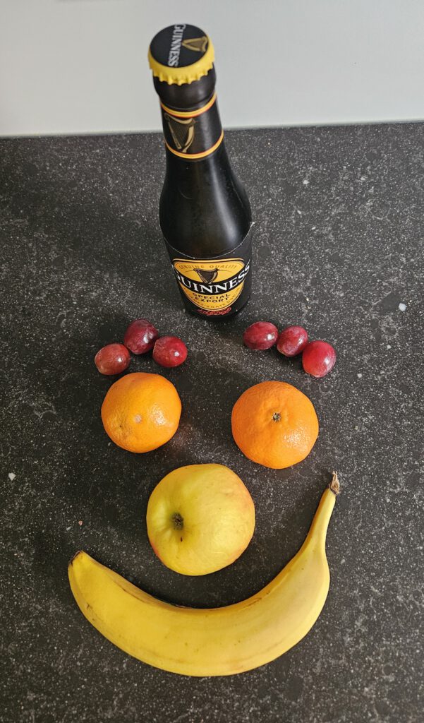 Een mooi begin van het jaar 2024, te weten, elk weekend een gezonde variatie fruit weg spoelen met de Ierse elixer uit fles. (Uit blik is niet te hachelen.)