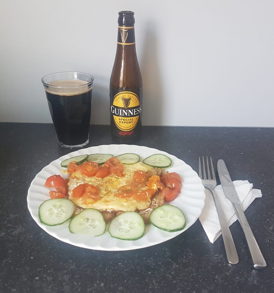Jawel, ei en ham met Guinness.